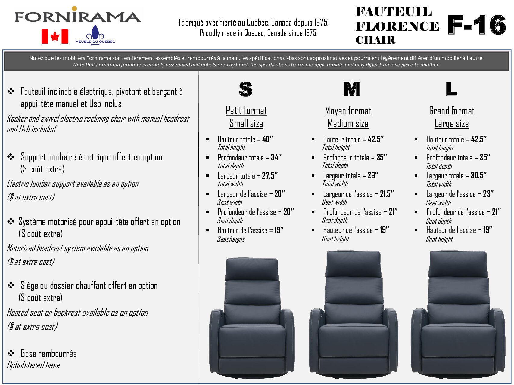 Fauteuil berçant inclinable pivotant électrique , FORMAT SMALL , CUIR PROMO ,