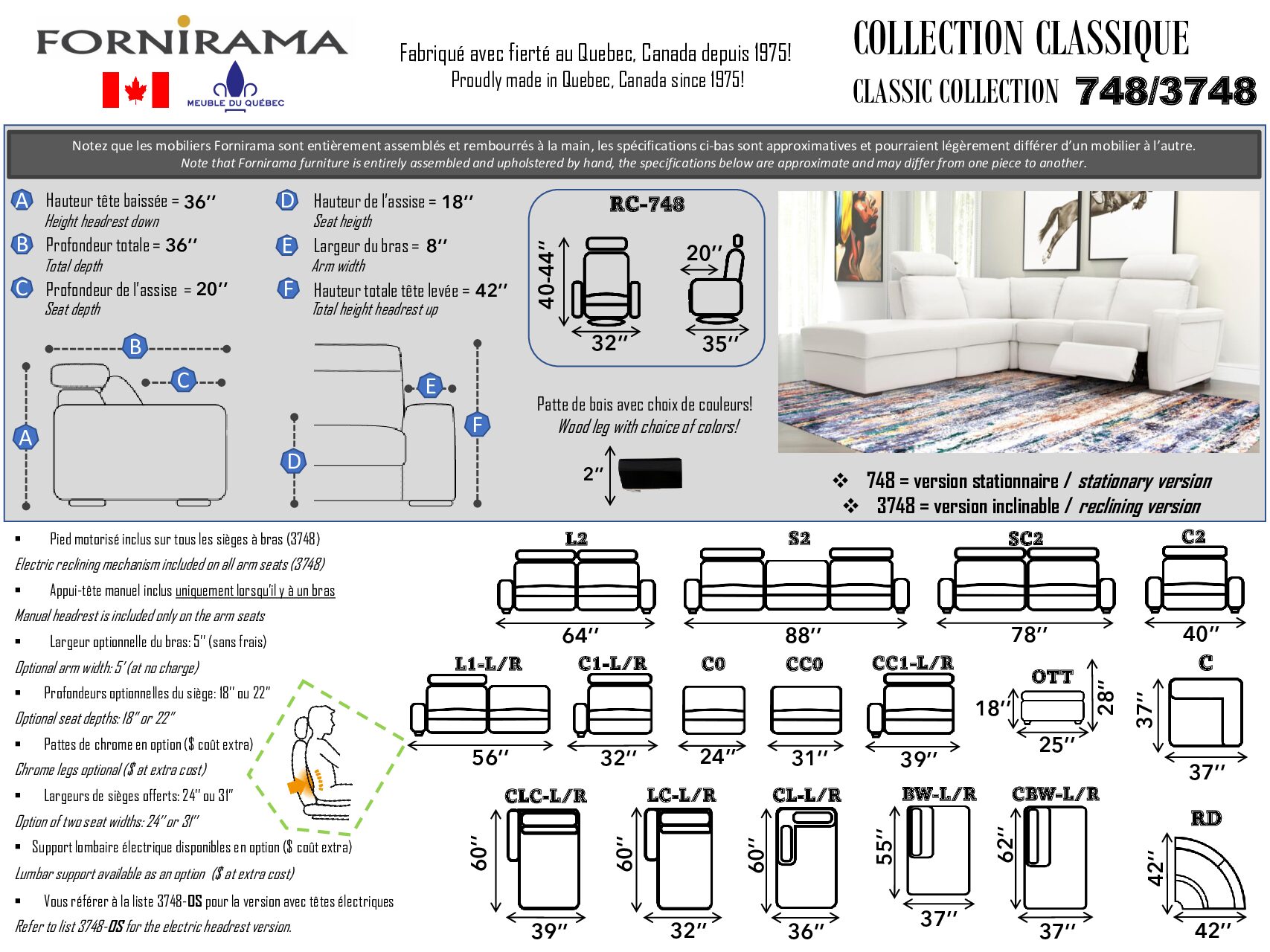 3748 sectionel cuir promo un coté inclibable