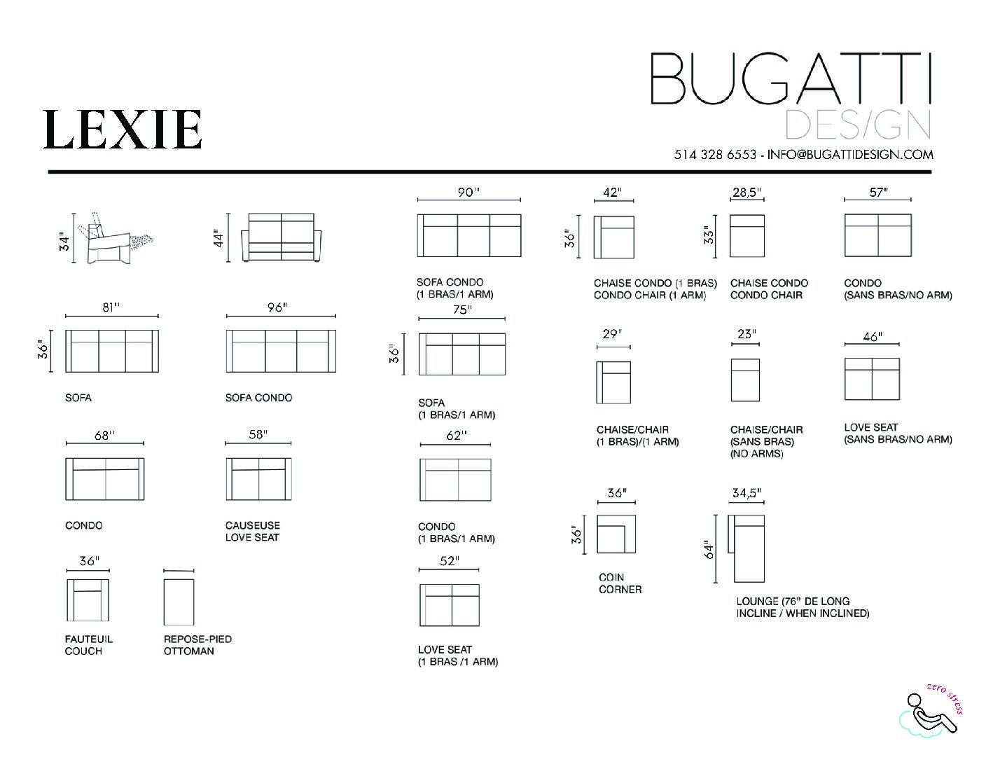 Largeur: 98″ Profondeur: 36″ Hauteur: 44″